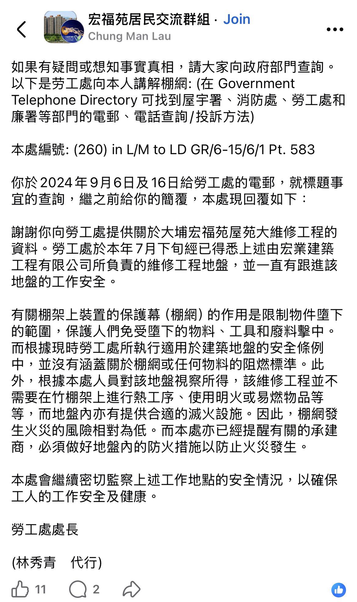 本區塊整理政府部門就宏福苑火災及相關事務的回覆、公開信件、法定命令以及業主立案法 團會議記錄。